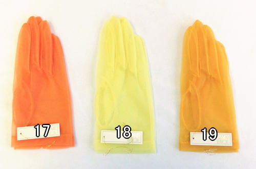 ナイロン100%メッシュ 丈:ショート(H-22)/40cm(H-40)/50cm(H-50) 色: 1:ピンク、2:サーモンピンク、3:チェリーピンク、4:ガーネットワイン 5:赤、6:白、7:オフ、8:クリーム 9:紺、10:パープル、11:ラベンダー、12:アクアブルー 13:ブルー、14:サックスブルー、15:若草、16:黒 17:オレンジ、18:イエロー、19:ヤマブキ